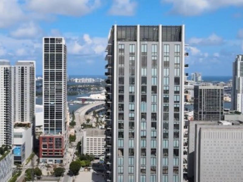 La última adición al vibrante centro de Miami; la torre combina espacios residenciales y de oficina.